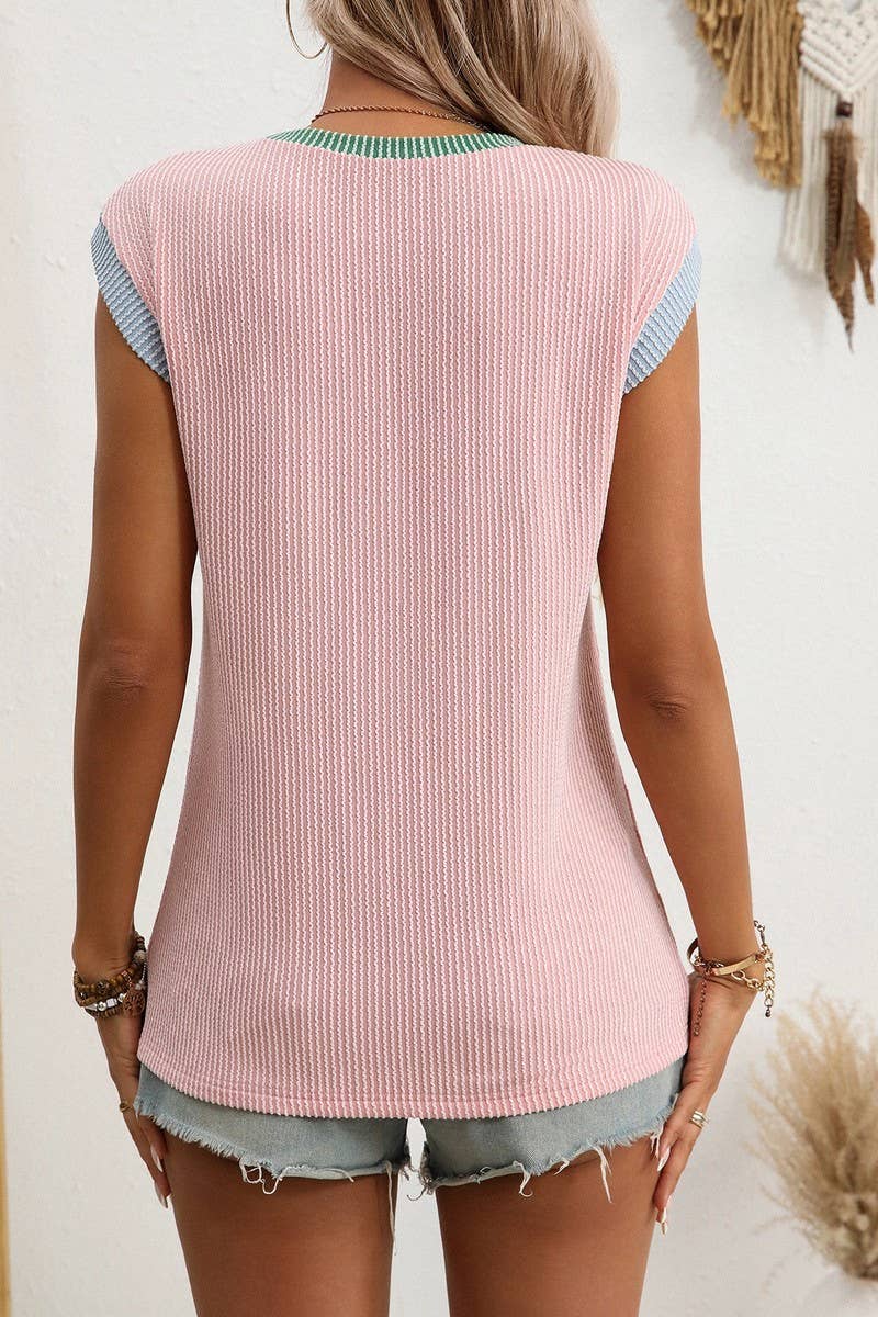 COLORBLOCK TWIST SEAM SLEEVELESS CREW NECK TANK