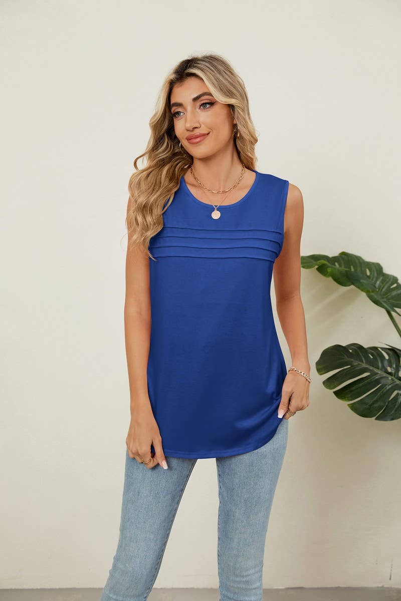 RUCHED SLEEVELESS CREWNECK SOLID TANK TOP