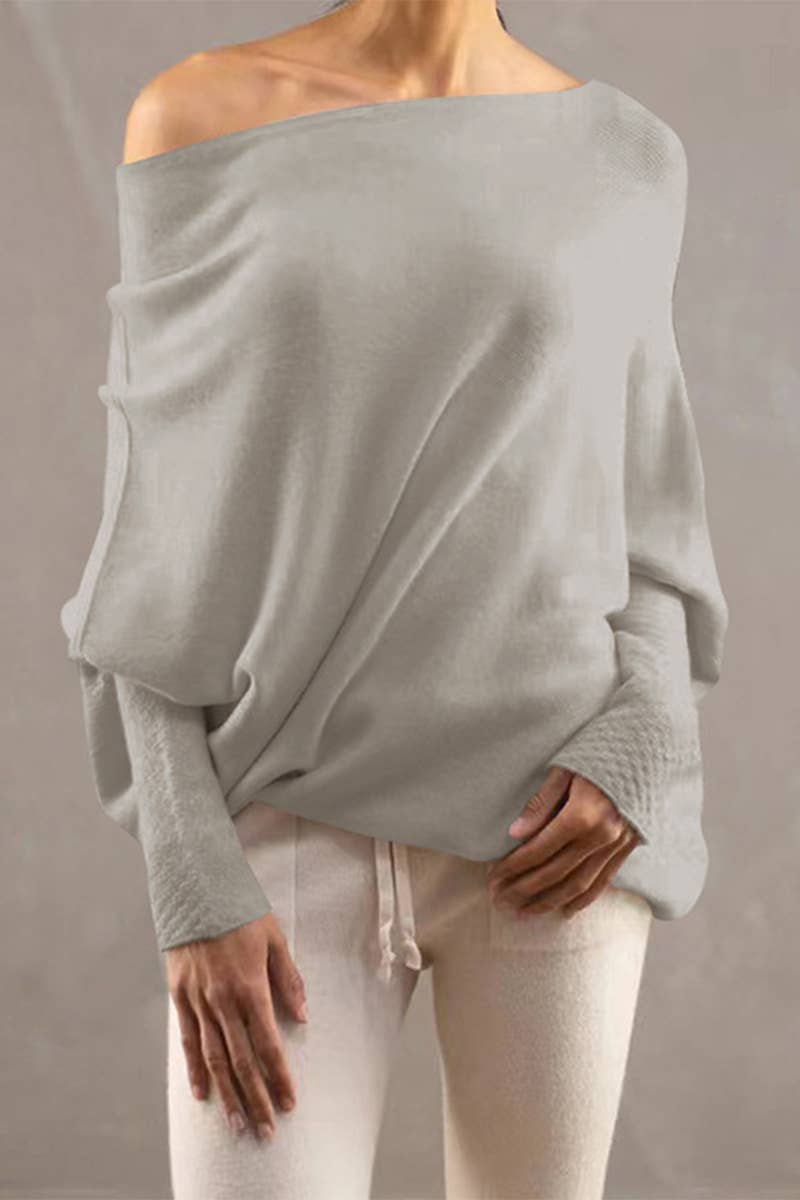 ONE-SHOULDER VERSATILE BAT SLEEVE KNITTED TOP