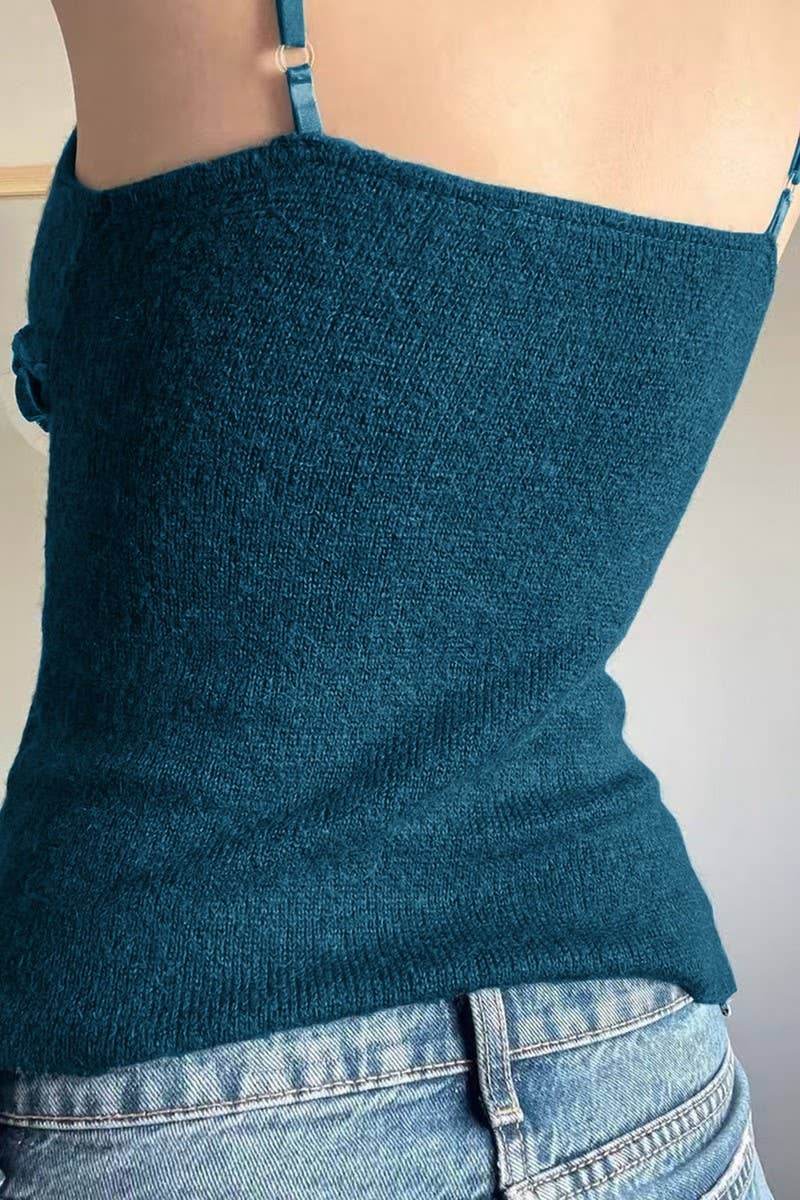 SOLID COLOR SLIM FIT FLORAL KNITTED CAMISOLE