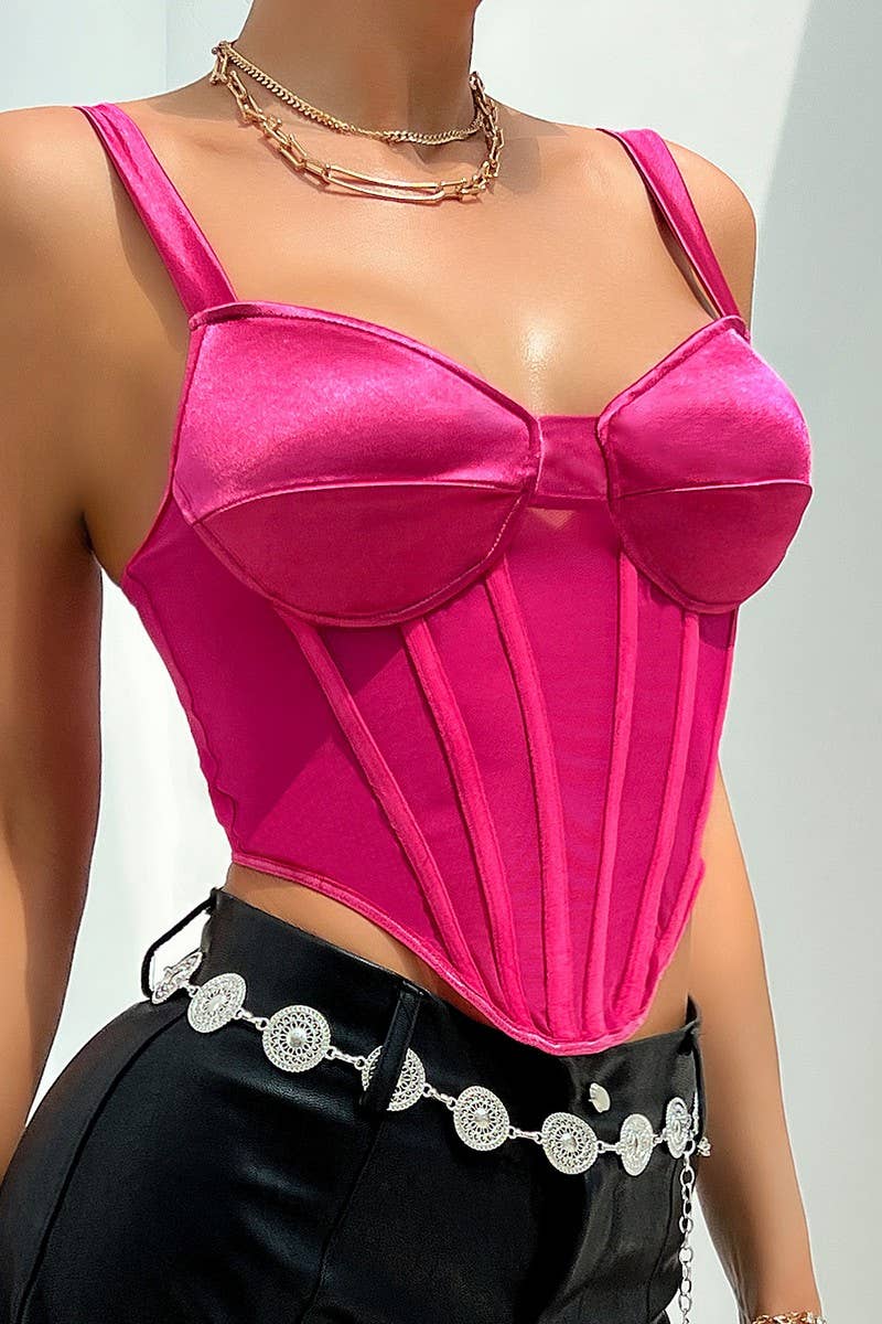 MESH SEE-THROUGH HERRINGBONE CAMISOLE TOP