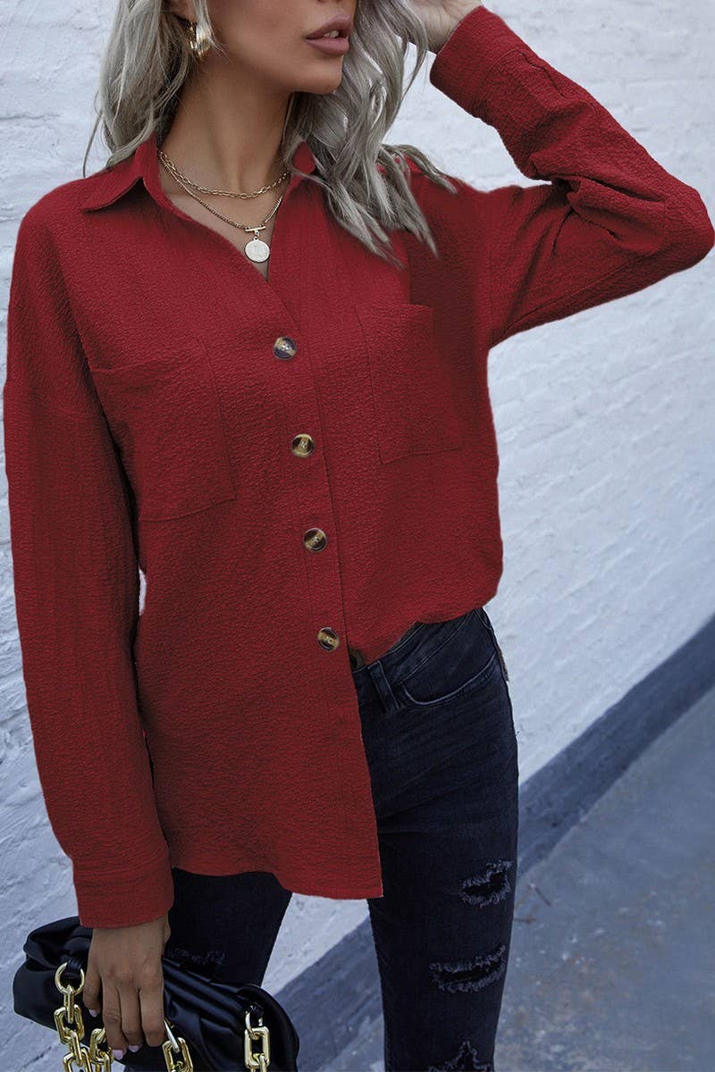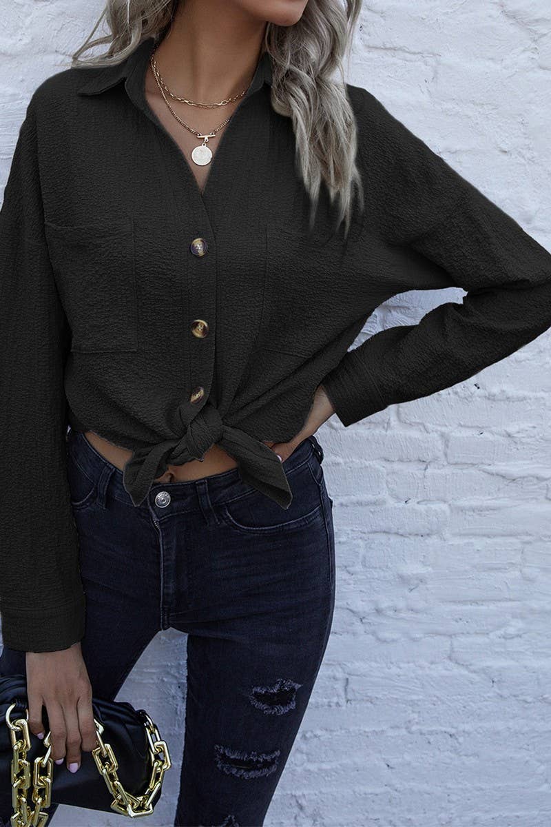 LONG SLEEVE SOLID LAPEL MID-LENGTH VINTAGE SHIRT