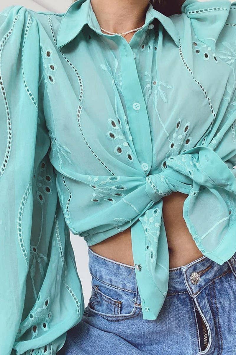 CASUAL LOOSE HOLLOW OUT PUFF SLEEVE TOP