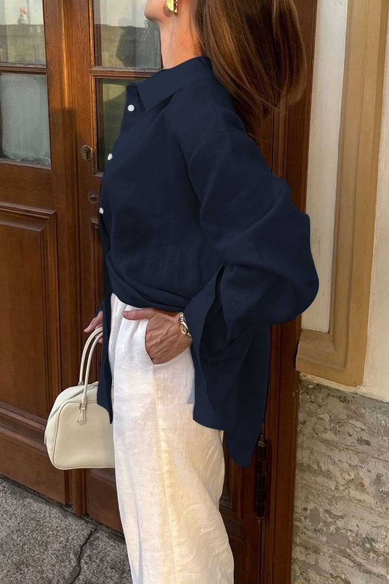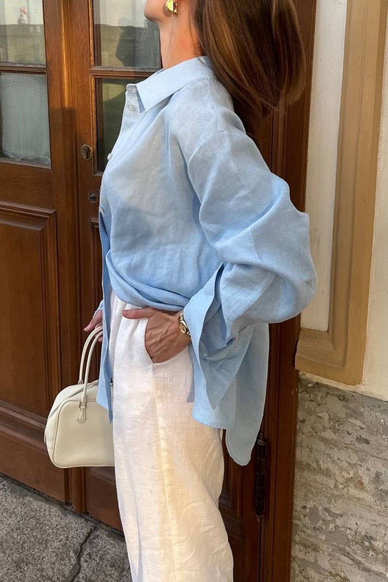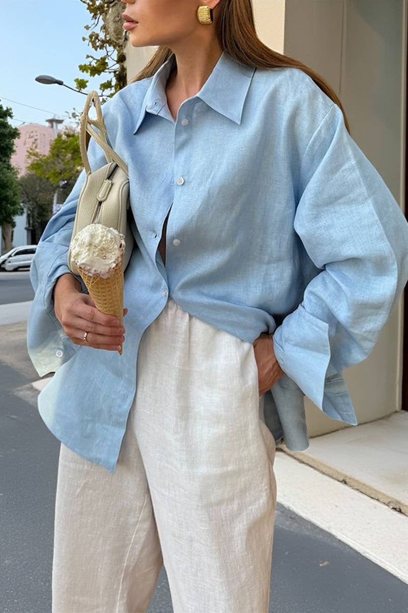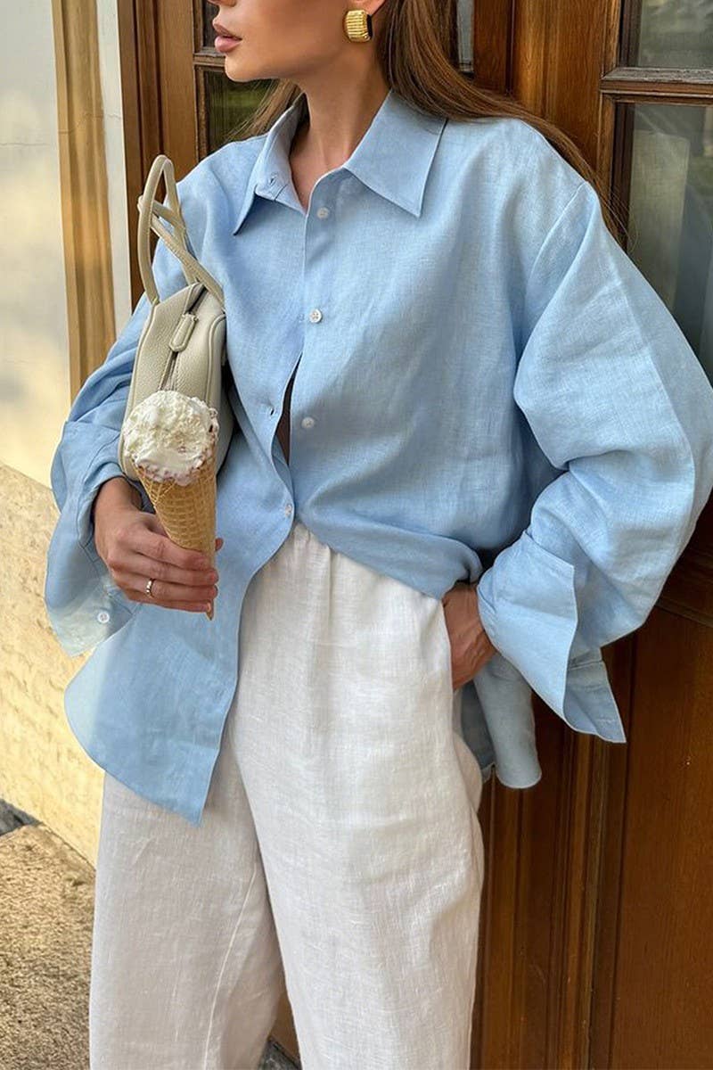 CASUAL VACATION SOLID LONG SLEEVE SHIRT
