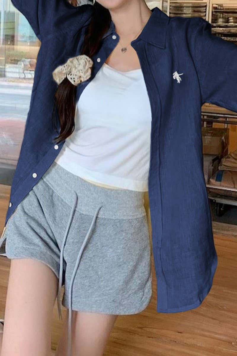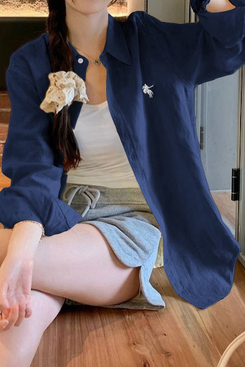 CASUAL LOOSE SOLID LONG SLEEVE SHIRT