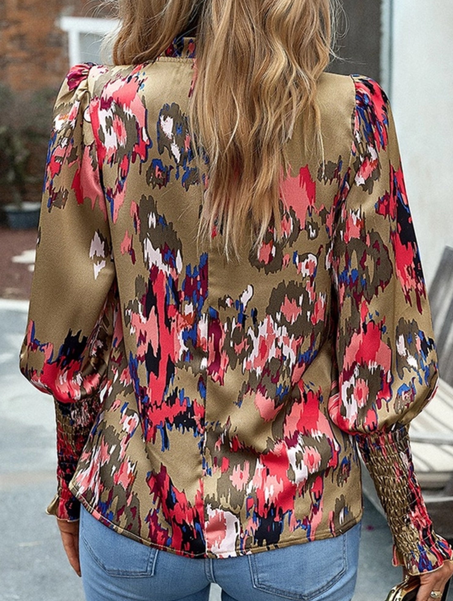 WOMEN FITTED SMOCK CUFF MARBLE PRINTING BLOUSE