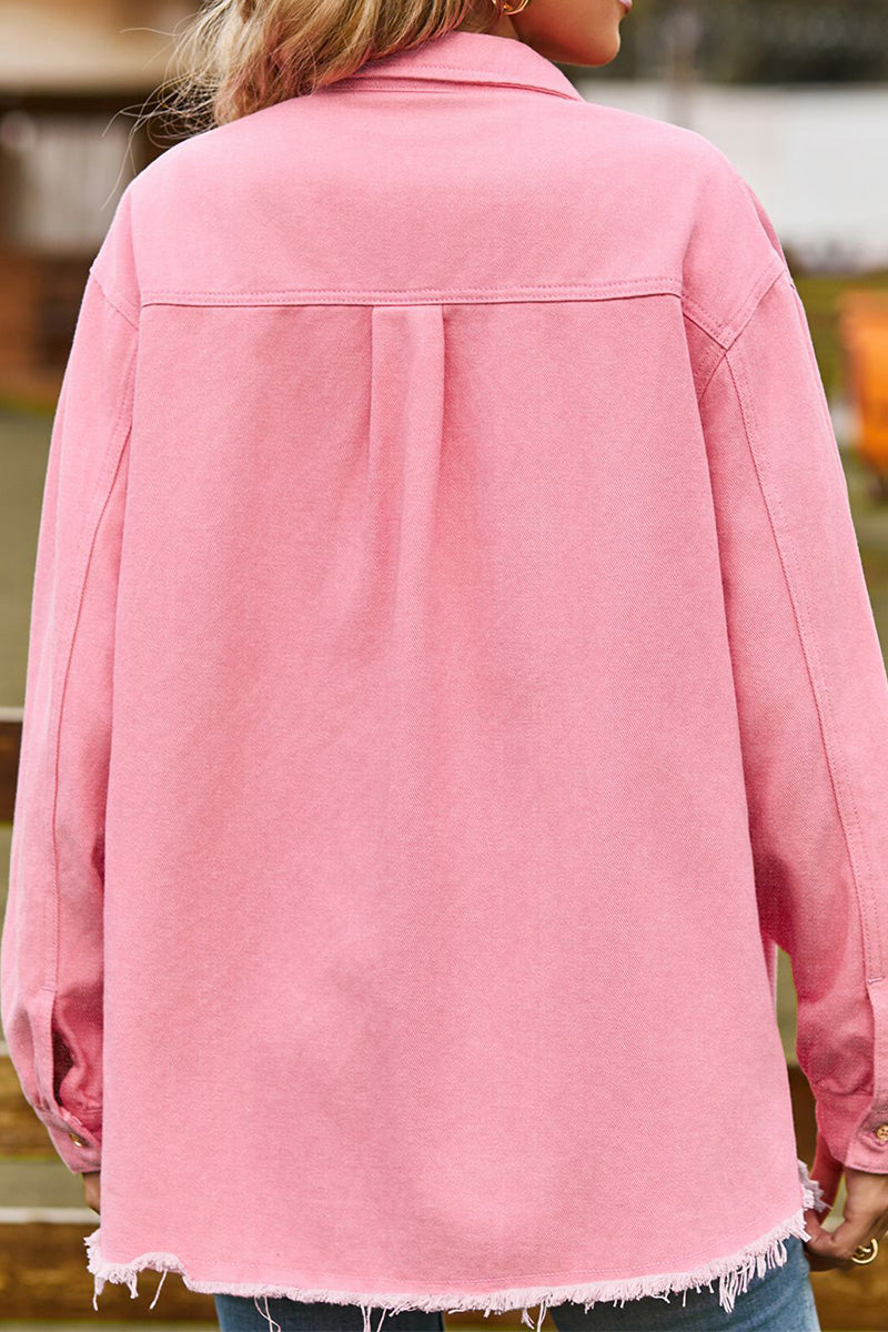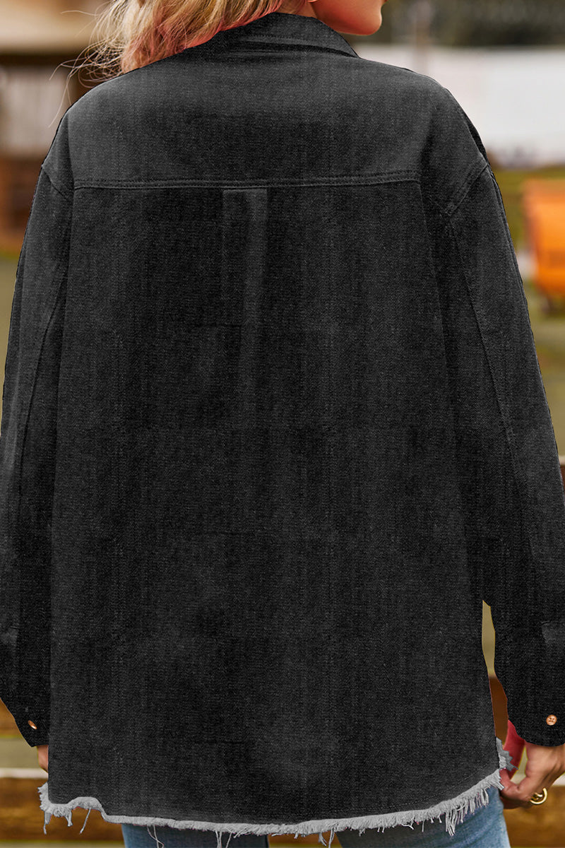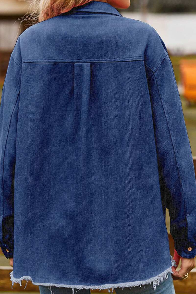 WOMEN DISTRESSED HEM BUTTON UP DENIM SHIRT