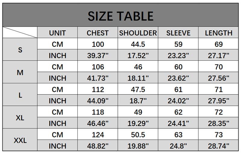 OUR PRODUCT SIZE STANDARDS ARE DIFFERENT, PLEASE CHECK THE SIZE INFORMATION BEFORE PLACING AN ORDER MADE IN CHINA