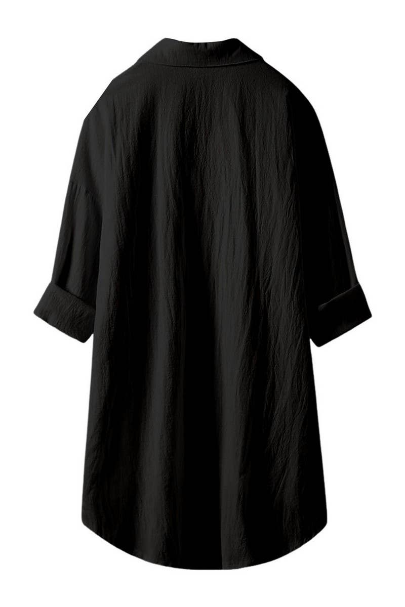 SOLID COLOR HIGH AND LOW COTTON AND LINEN SHIRT
