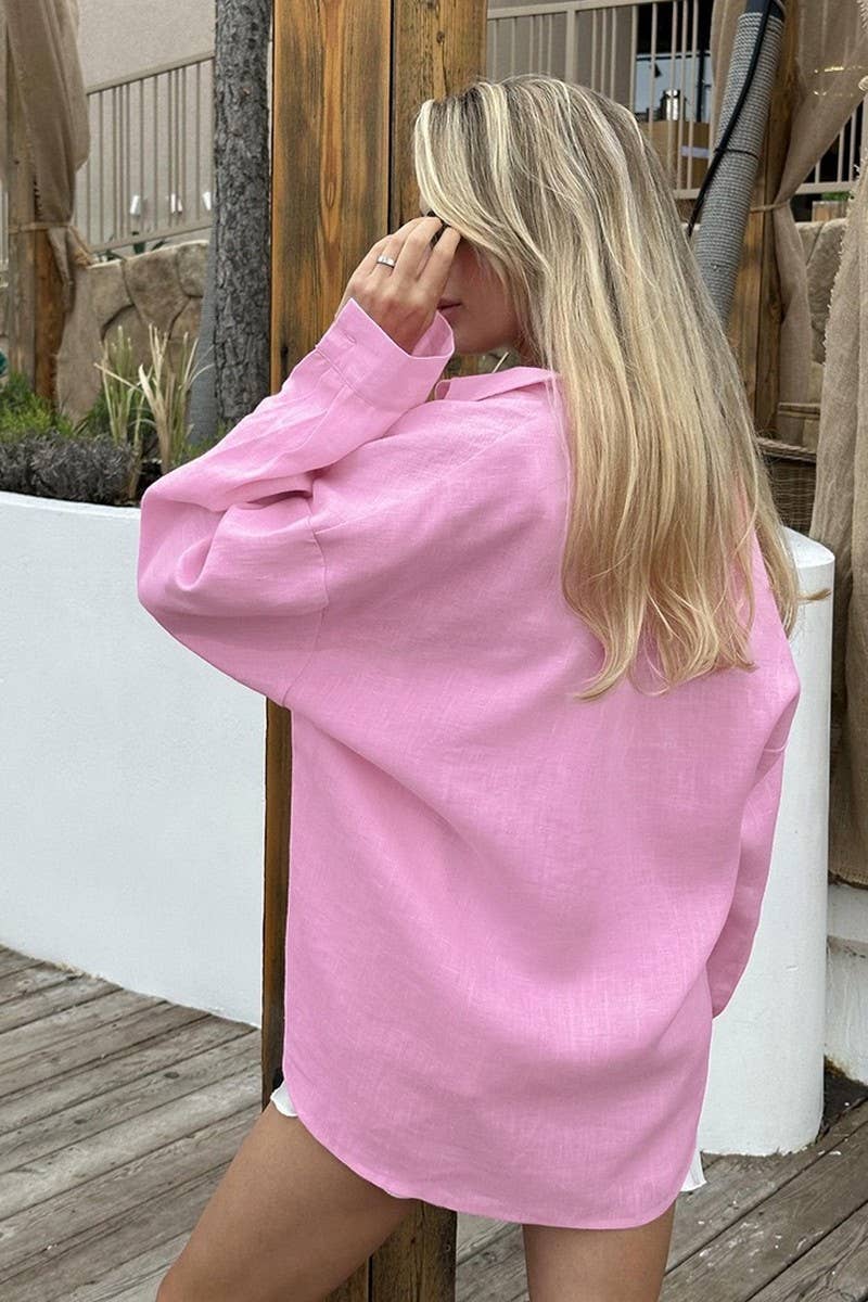 CASUAL SOLID OPEN FRONT SHIRT TOP