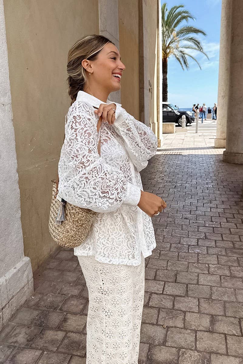 LACE HOLLOW LONG-SLEEVED SHIRT TOP