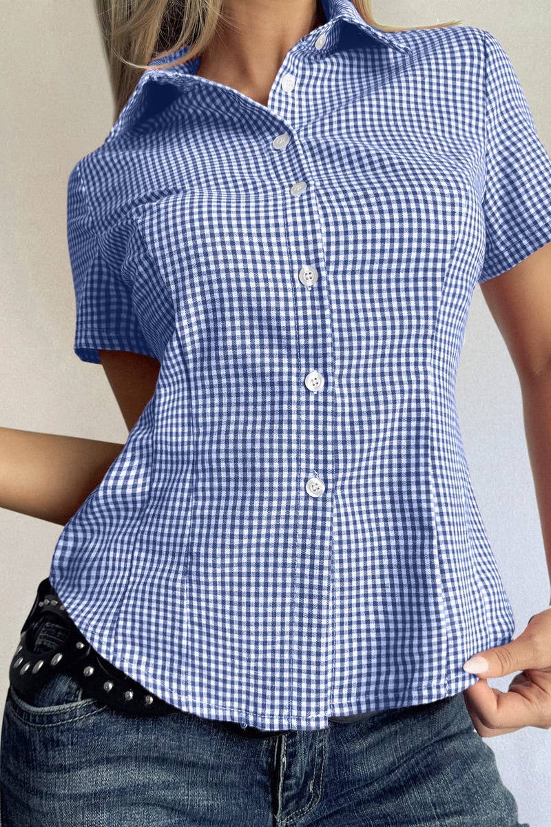 CASUAL PLAID BUTTON SHORT SLEEVE SHIRT
