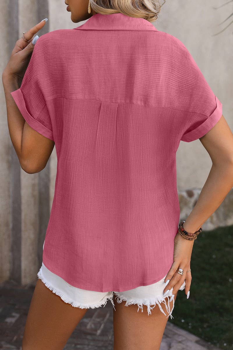 CASUAL PLEATED SHIRT WITH SHORT SLEEVE POCKET
