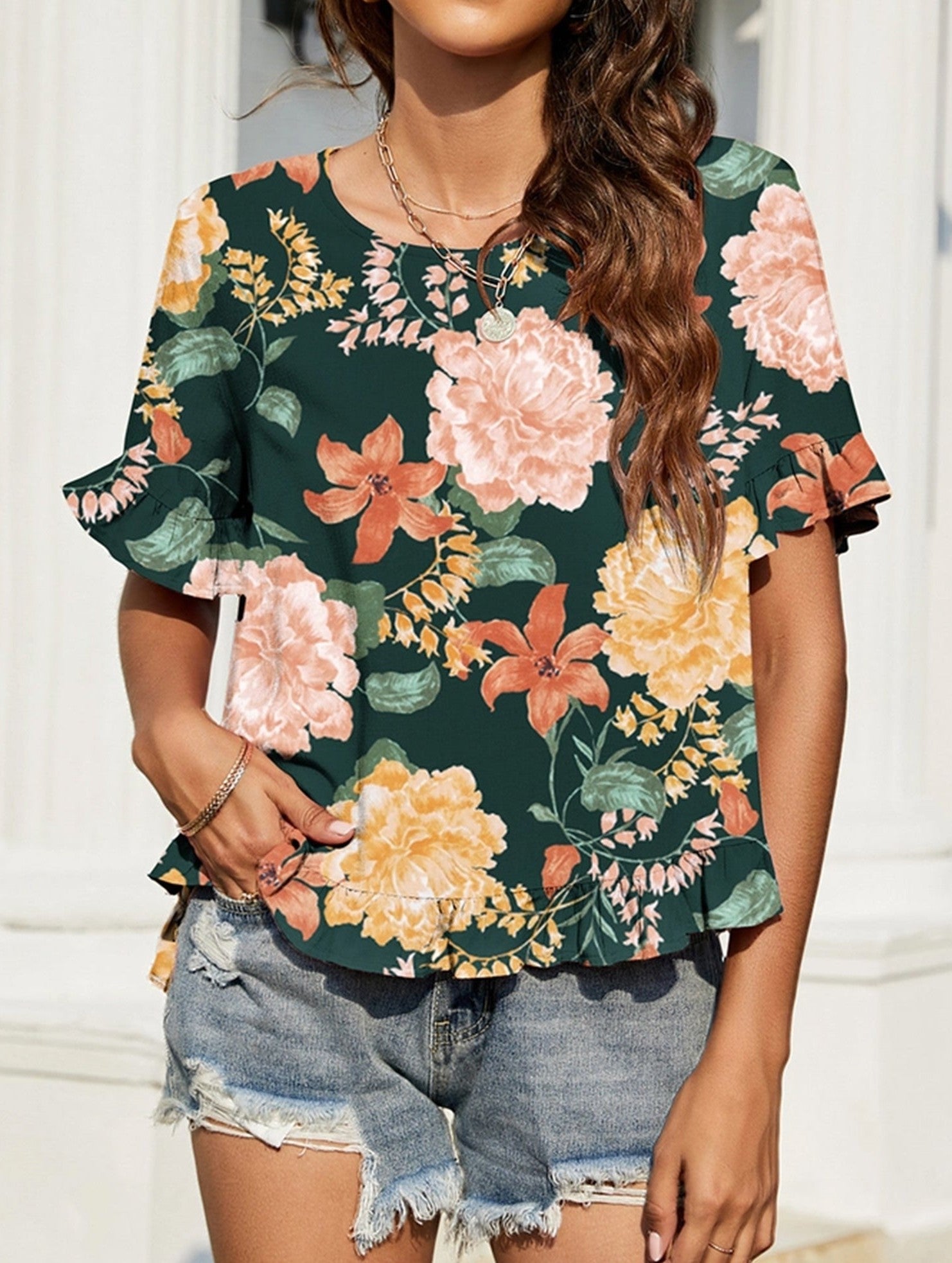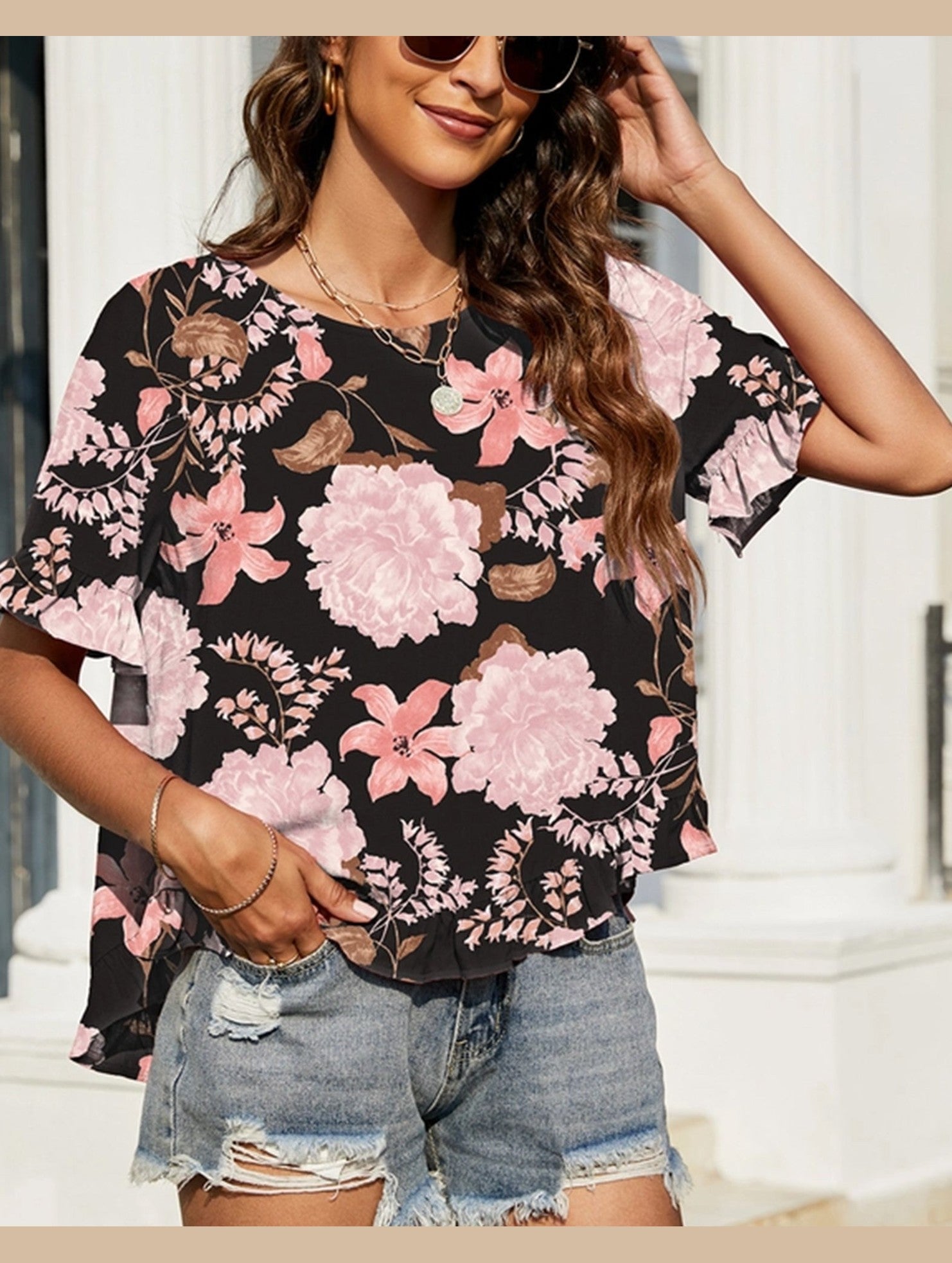 CREW NECK SHORT FRONT LONG BACK CASUAL LOOSE TOP
