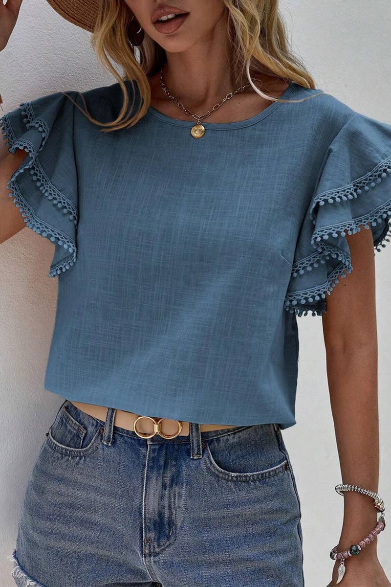 WOMEN'S CASUAL ROUND NECK SUMMER LOOSE SHIRT95%POLYESTER,5%SPANDEX