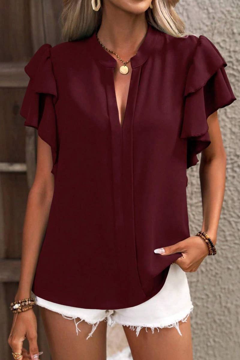 SUMMER V-NECK CASUAL RUFFLE SLEEVE SHIRT