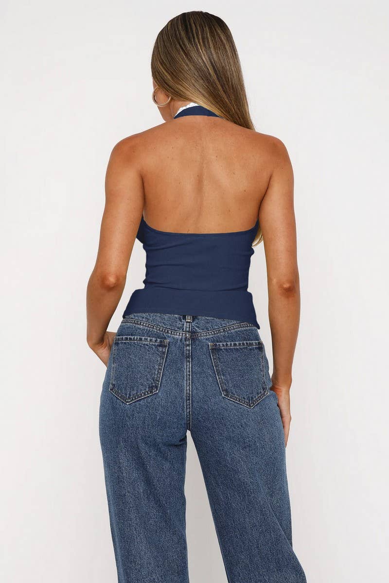 LACE-UP BOW HALTER NECK GYARU CAMISOLE