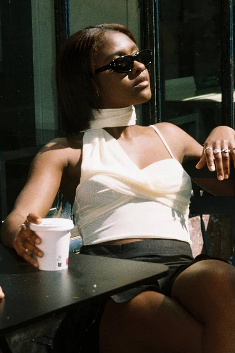 SUMMER STRAPLESS CROP ONE-SHOULDER TIE TOP