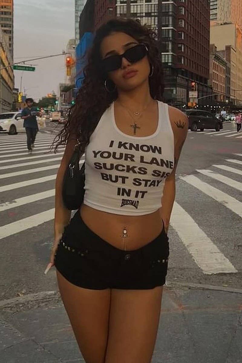 LETTER PRINT SLIM FIT SLEEVELESS TANK TOP