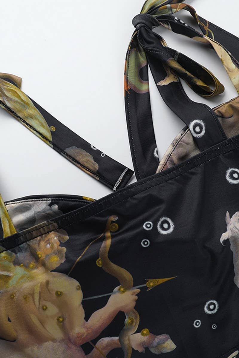 VINTAGE PRINT TIE WAIST CAMI CROP TOP