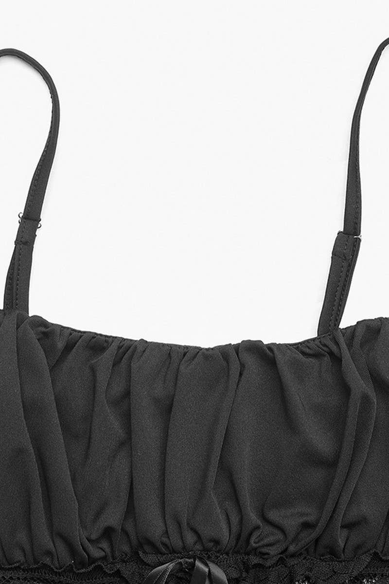 SEXY SLIM FIT LACE TRIM SOLID CAMI CROP TOP