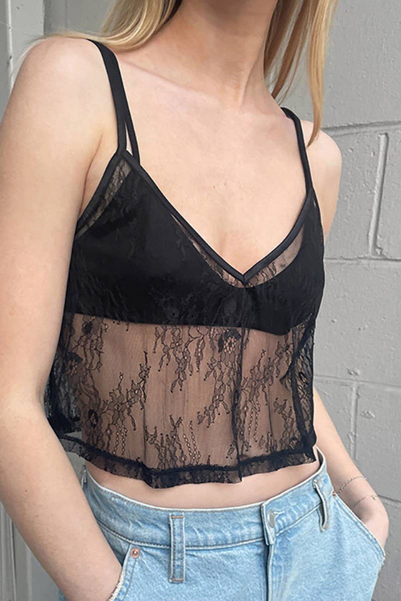 LACE SEE-THROUGH BLACK CAMISOLE THIN VEST