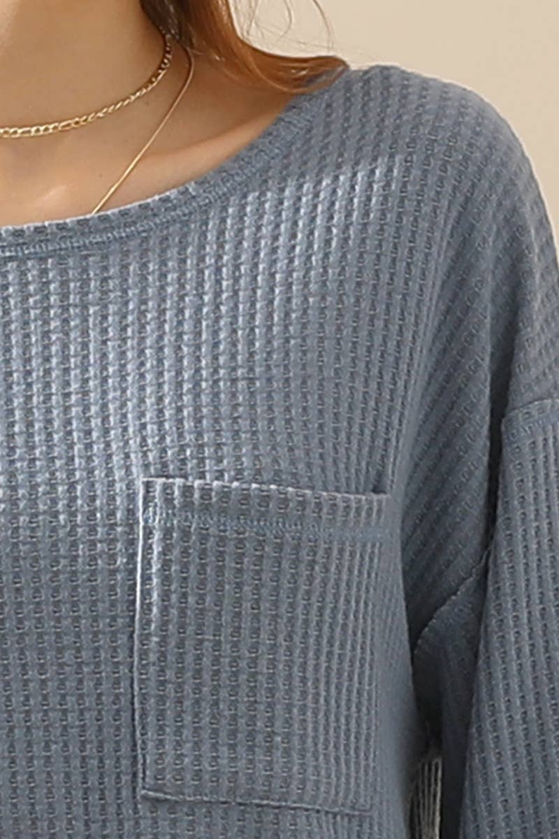 SHIRING CUFF R NECK SWEATER KNIT TOP