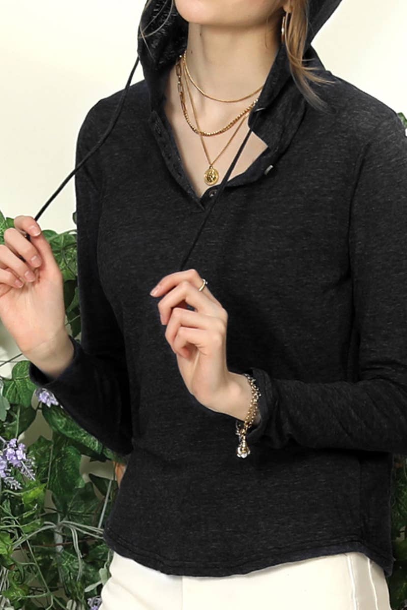 HENLEY LIGHT WEIGHT BUTTON DOWN HOODIE TOP