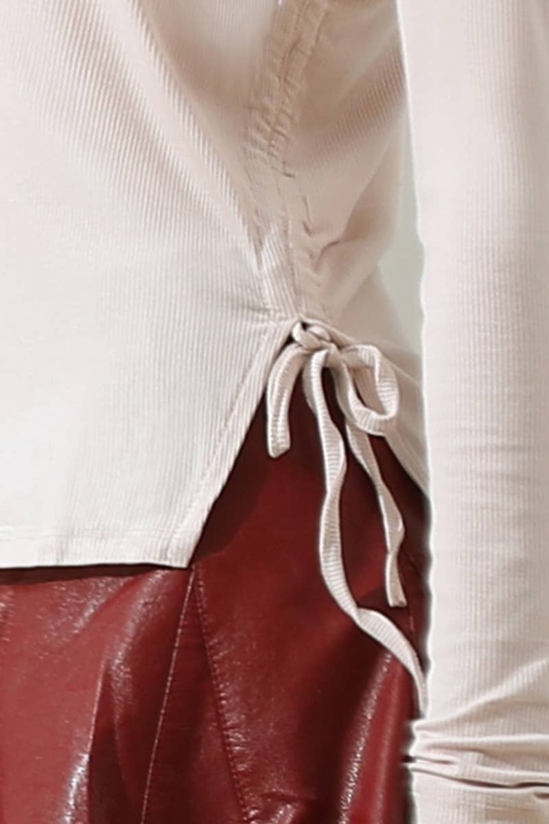 LONG SLEEVE CREW NECK LACE-UP STRING SHIRRING TOP