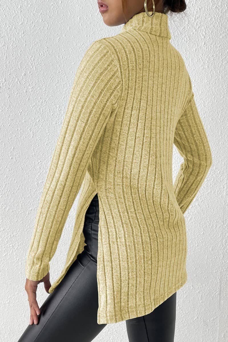 Turtle Neck Long Sleeve With Side Slit Pullover Top