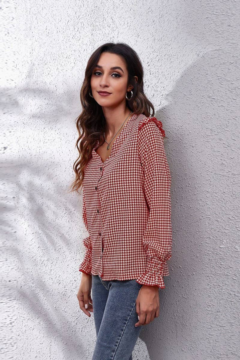 V-Neck Casual Long Sleeve Print Top