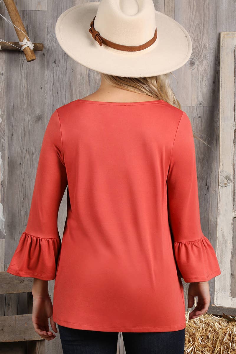 3/4 SLEEVE WITH NECK STRING DETAILED TOP