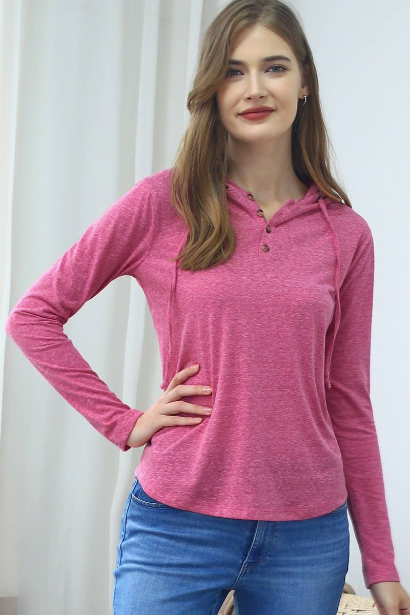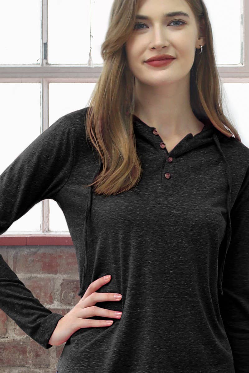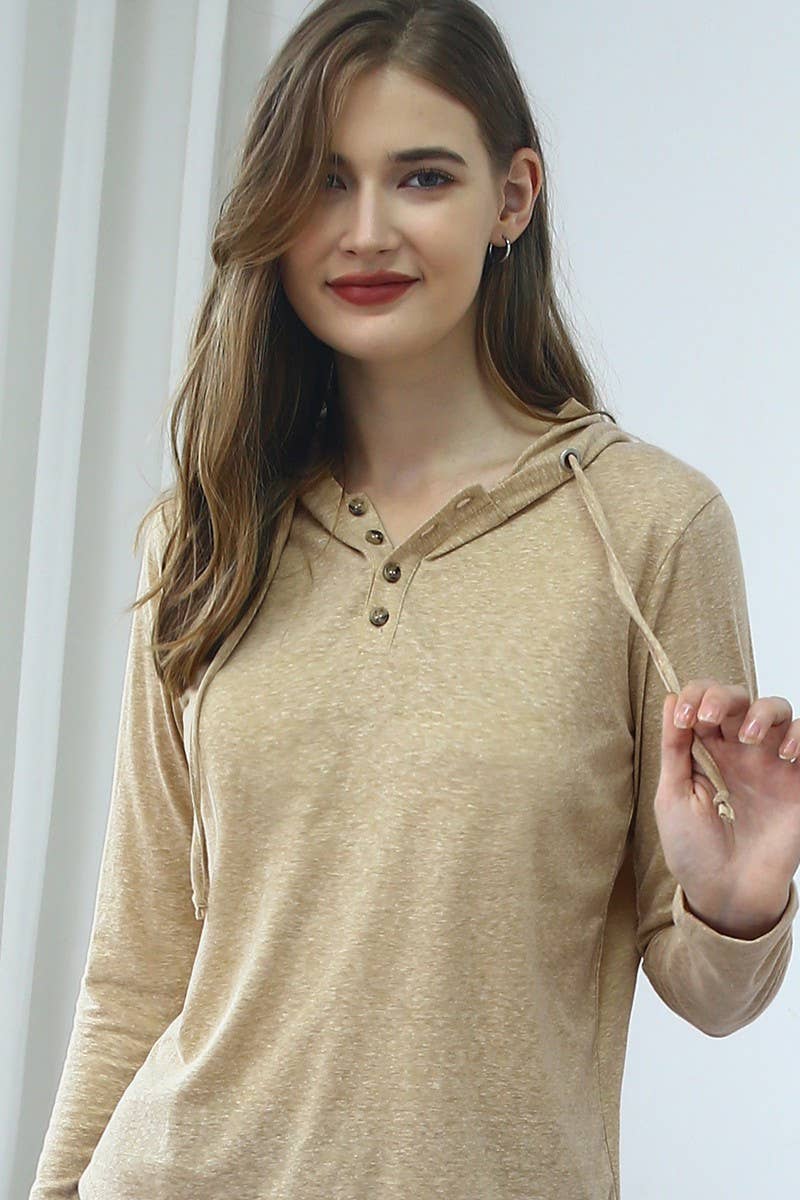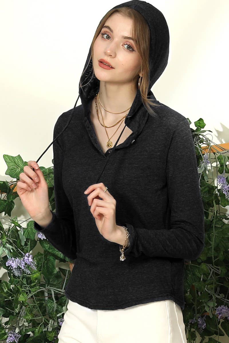 BUTTON DOWN HENLEY LIGHT WEIGHT HOODIE TOP