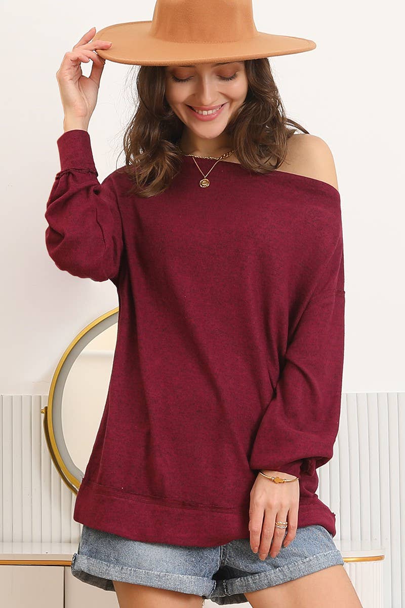 BOAT NECK PULLOVER SWEATER KNIT TOP WITH RAW SEAM