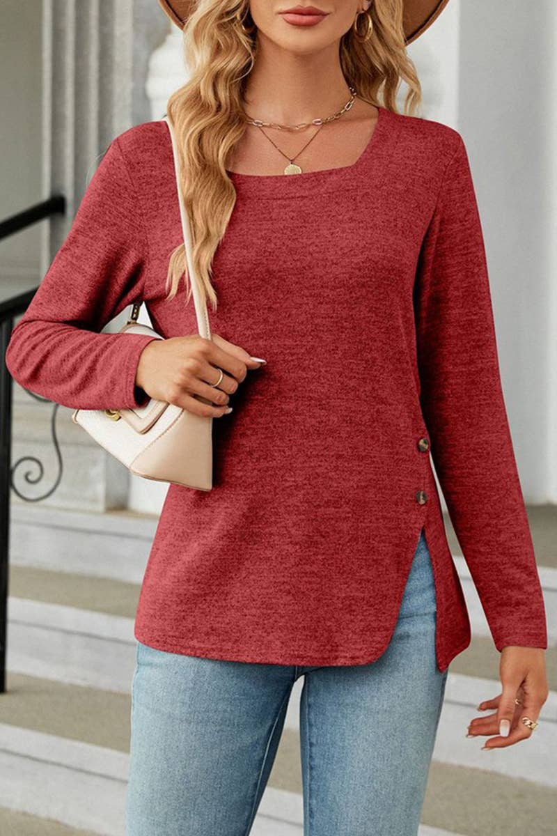 Sweetheart neck Pullover Long Sleeve Blouse