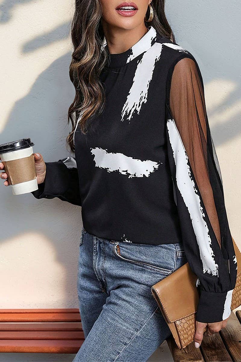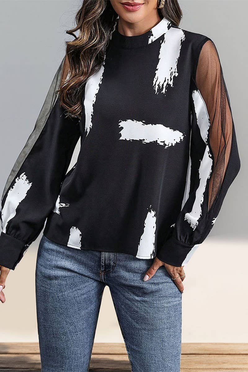 LACE STITCHING STAND COLLAR ELEGANT COMMUTER SHIRT