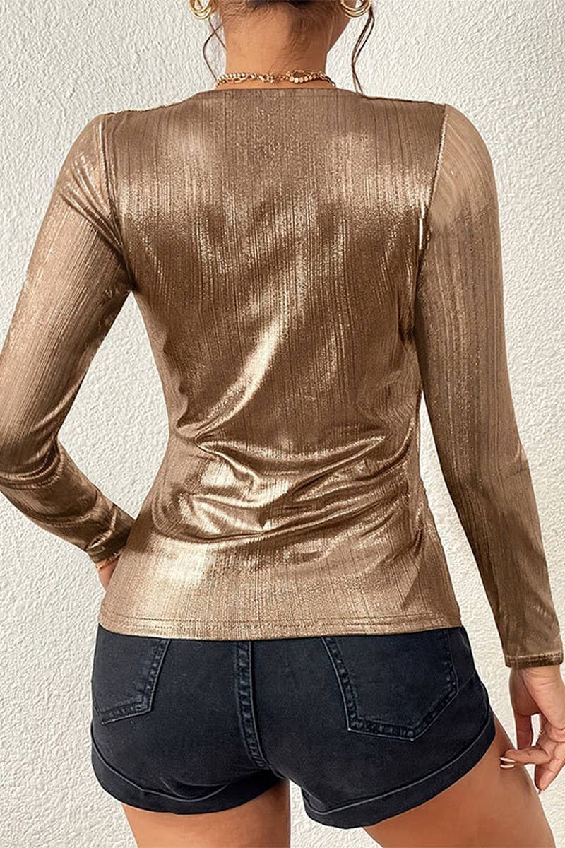 SUMMER GLOSSY V-NECK PLEATED TOP