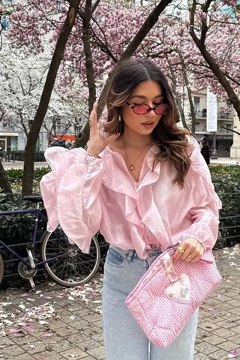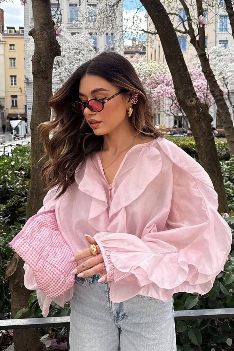 SOLID COLOR TEMPERAMENT RUFFLED ZIPPER TOP