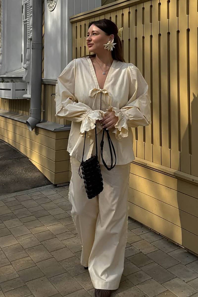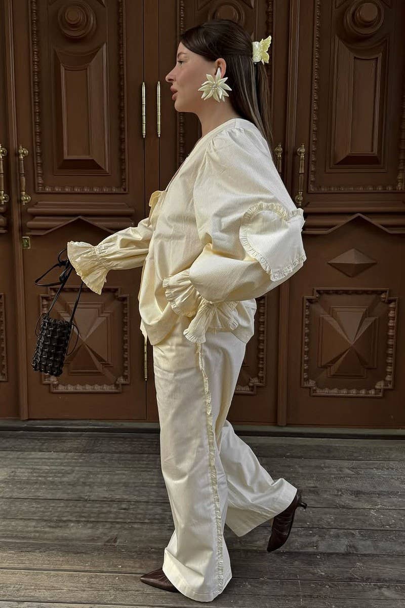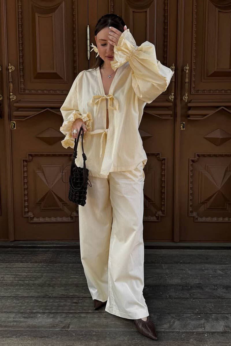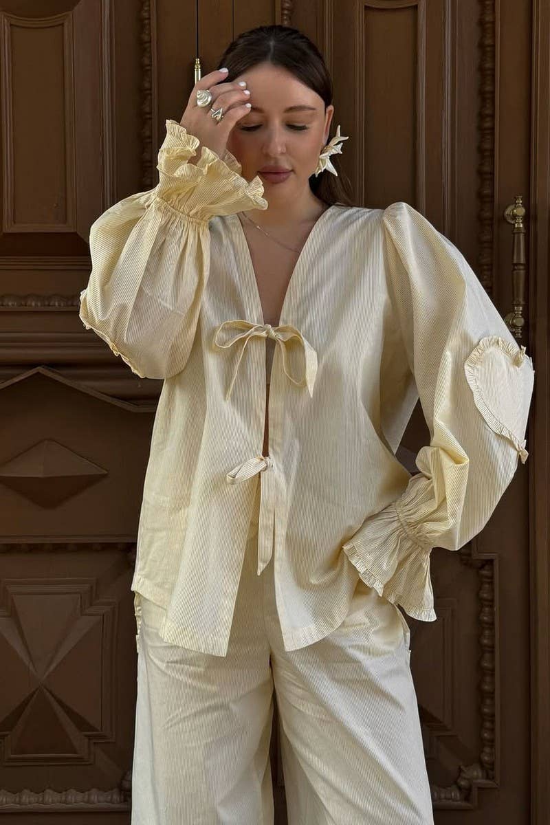 FUNGUS PLEAT HEART STITCHING CARDIGAN LACE-UP SHIRT
