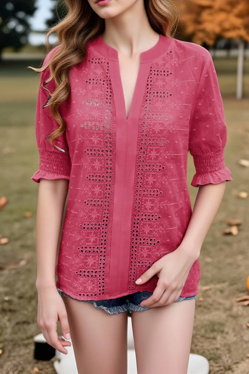 V-NECK CASUAL PULLOVER PUFF SLEEVE LOOSE T-SHIRT