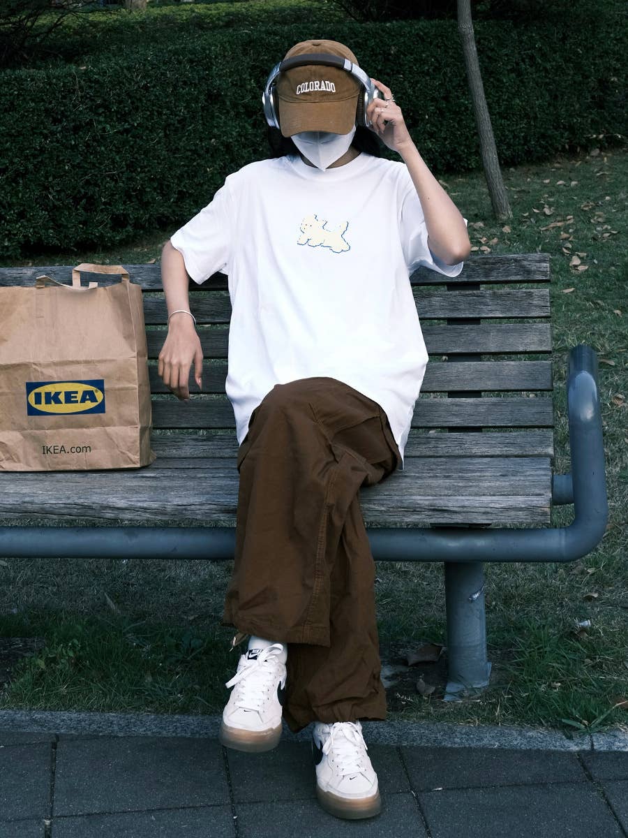 LITTLE WHITE DOG PRINT CREW NECK SHORT SLEEVE