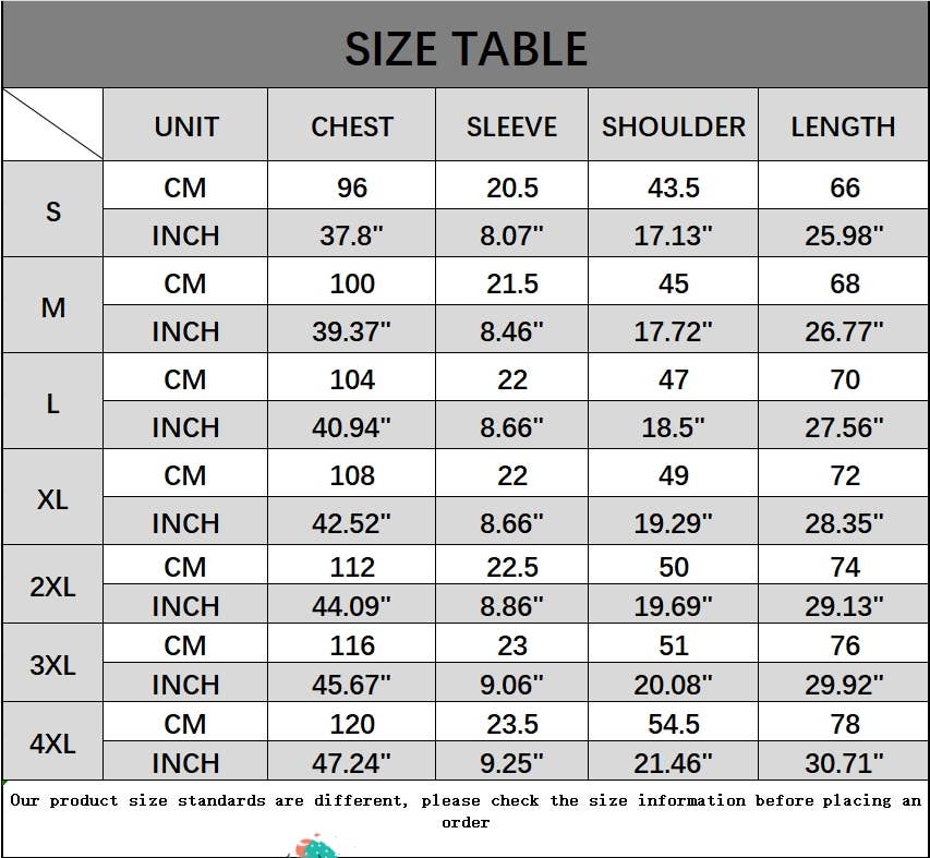 SIZE S/M/L/XL/2XL/3XL/4XL