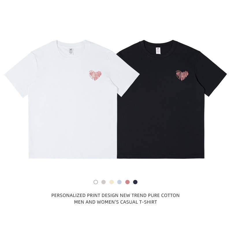 PINK LOVE HEART PRINTED ROUND NECK CASUAL T-SHIRT