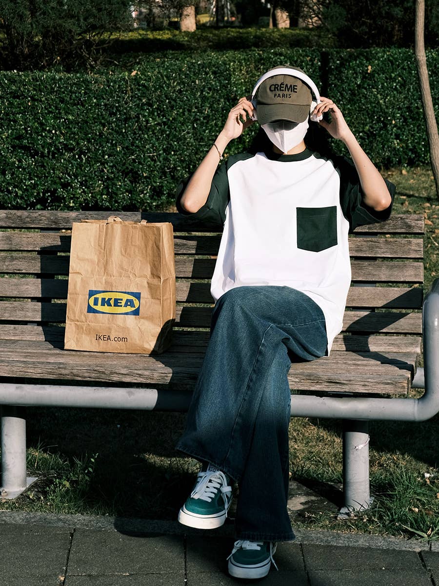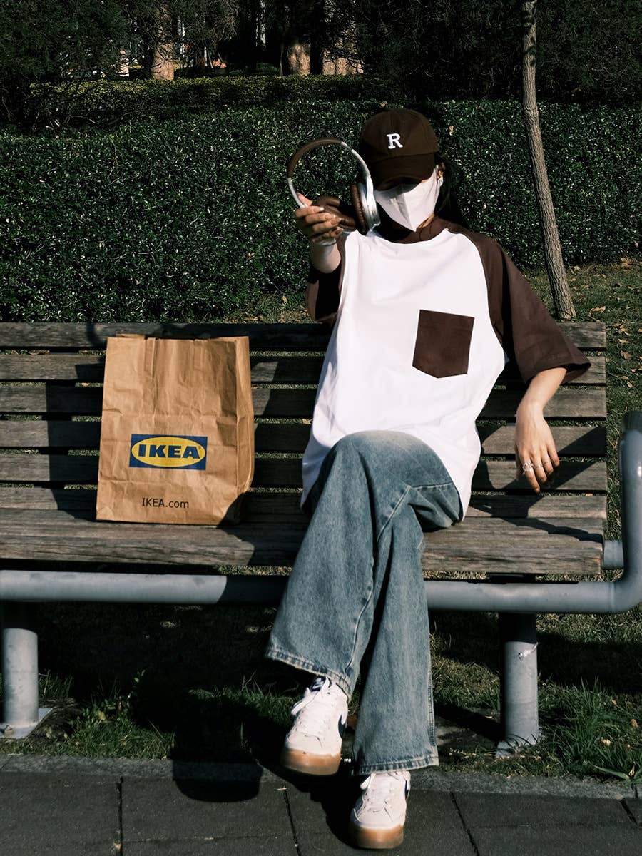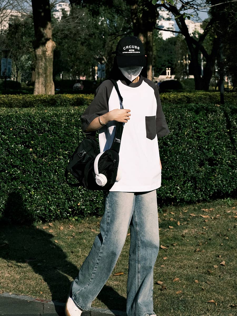 COLOR CONTRAST POCKET DESIGN CASUAL T SHIRT