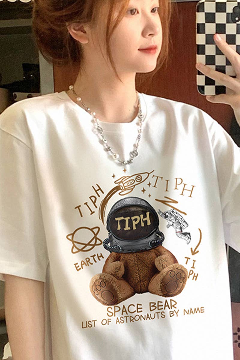CARTOON BEAR PRINT CASUAL T SHIRT