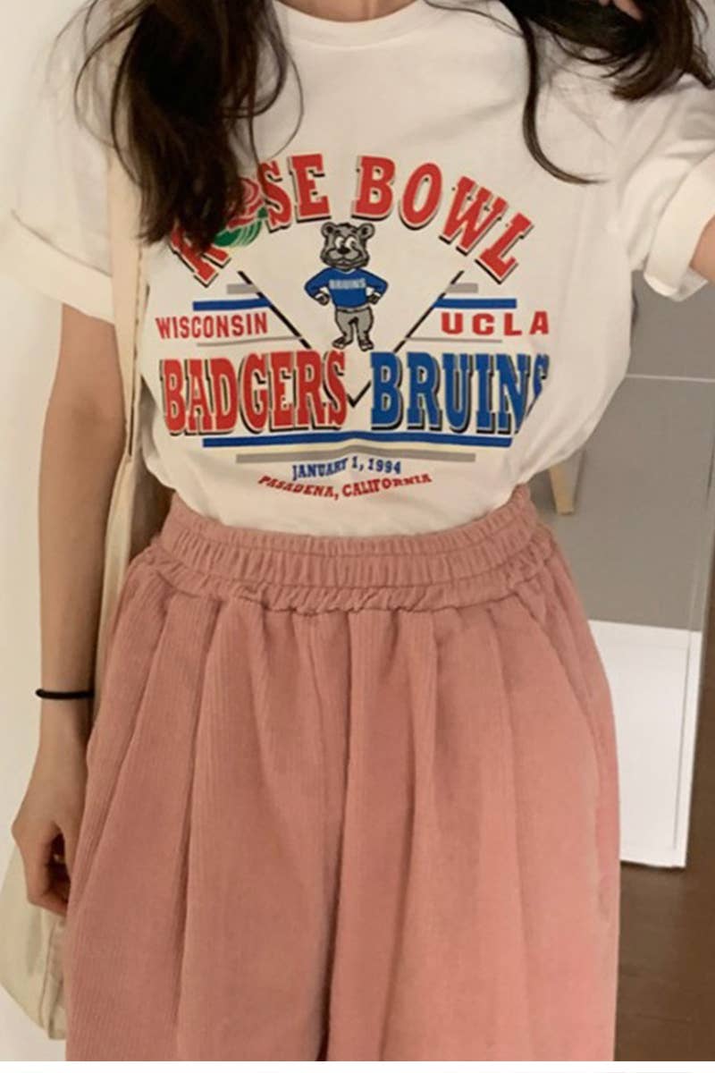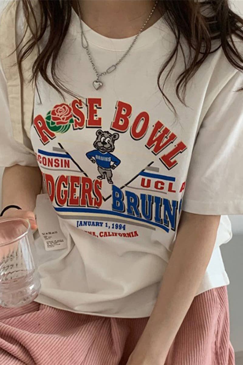 CARTOON LETTER PRINT CASUAL T SHIRT