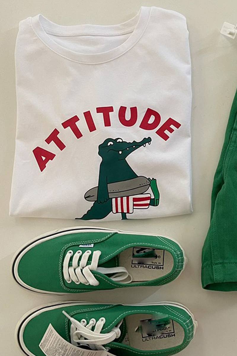 CARTOON LETTER PATTERN SHORT SLEEVED T SHIRT