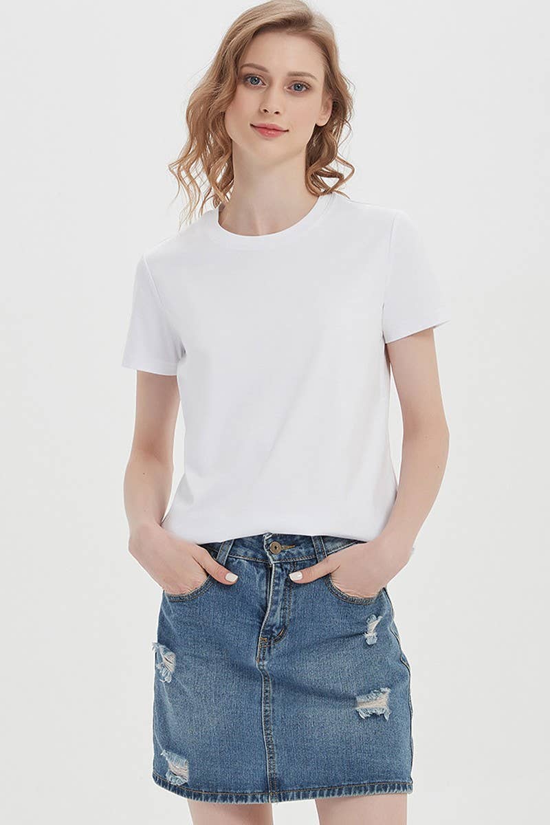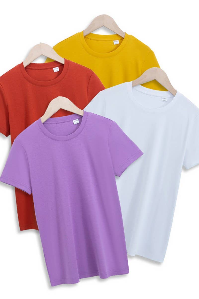 SOLID COLOR CASUAL ROUND NECK WOMEN T-SHIRT
