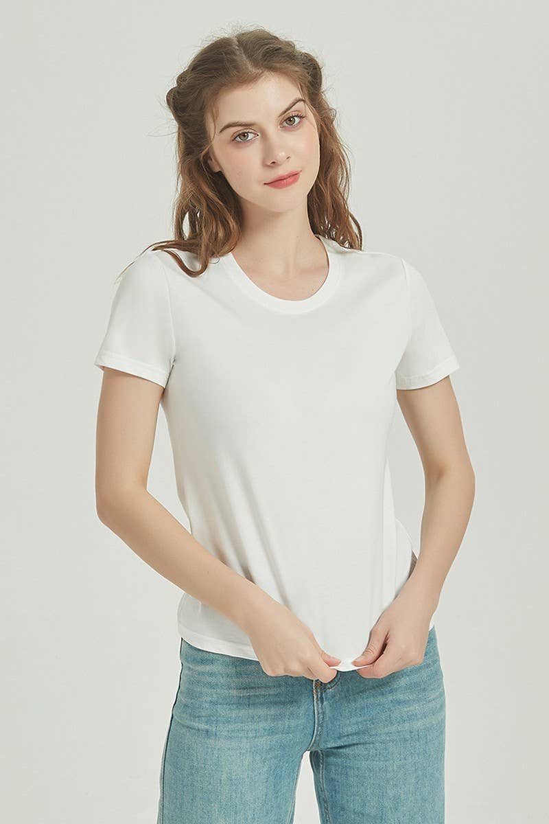 SOLID COLOR CASUAL ROUND NECK WOMEN T-SHIRT