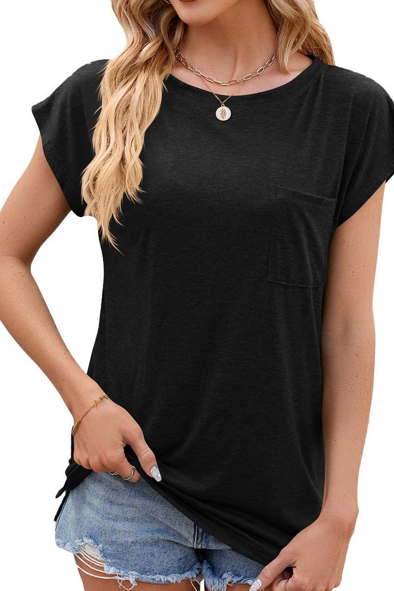 ROUND NECK SHORT SLEEVE PATCHWORK POCKET T-SHIRT